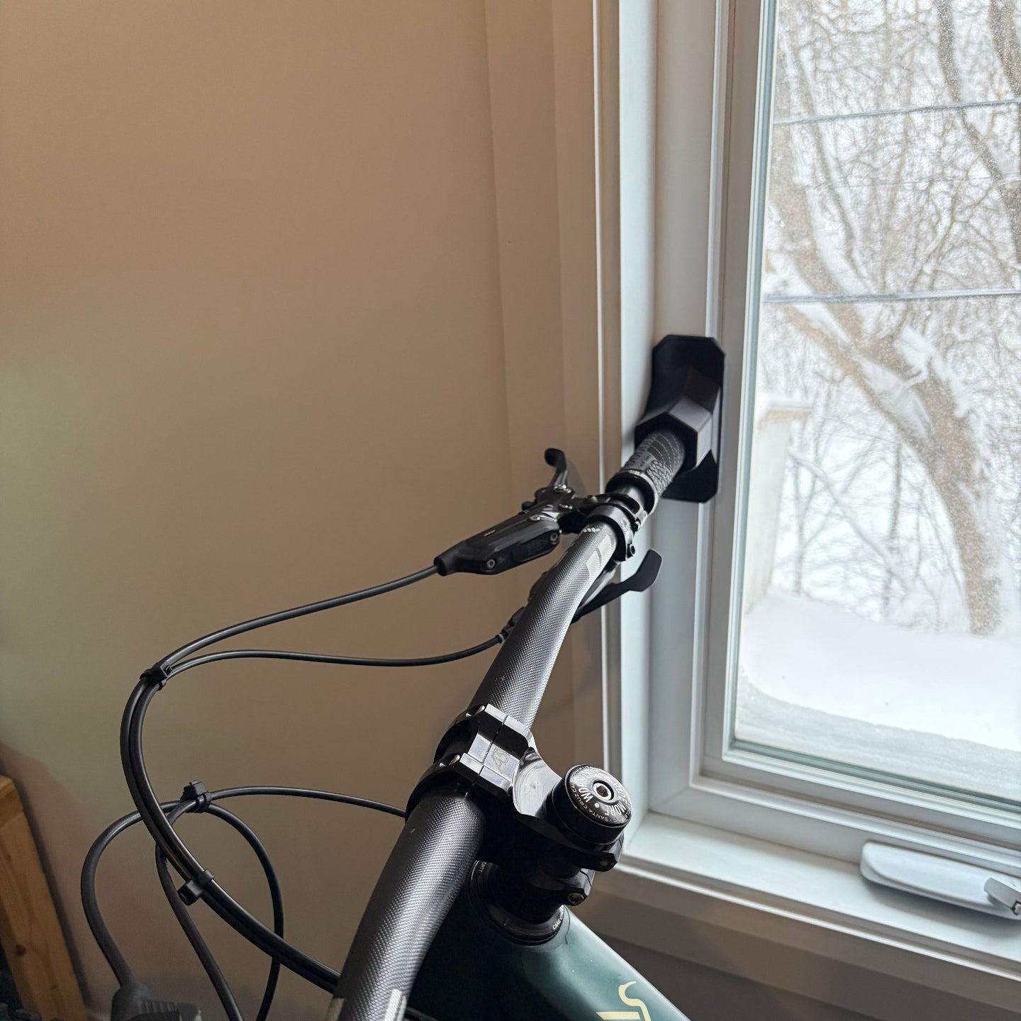 This is a free digital download. The Wall Handlebar Stand Holder lets you park a bike safely against a wall using the handlebar, while preventing the steerer from rotating. It works with any MTB bar up to 38 mm grip diameter.